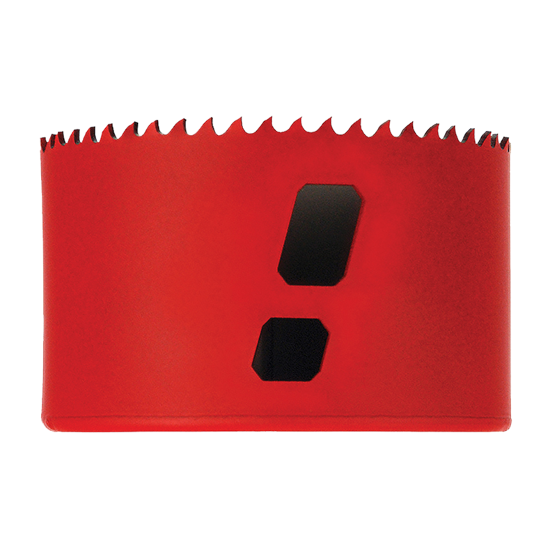 Hardened heat resistant positive rake HSS teeth with alloy backing. Strong and shatter resistant. Economically cuts wood metal and steel. For hand held or fixed drills. 2" cutting depth.