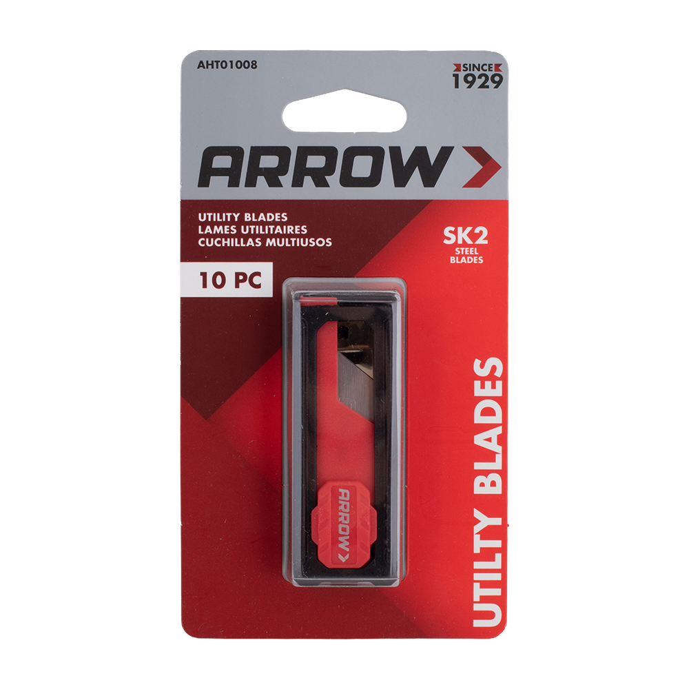 Upgrade your cutting tools with Arrow Tool Group Utility Blades, forged from high-quality steel for maximum strength and reliability. Designed with precision-honed edges, these blades offer exceptional sharpness and long-lasting durability, making them perfect for a wide range of tasks. With a universal fit, these industry-standard utility blades are compatible with all Arrow utility knives, ensuring you always have the right blade for the job. Whether you're working on DIY projects or professional tasks, trust Arrow for blades that deliver cutting-edge performance every time.