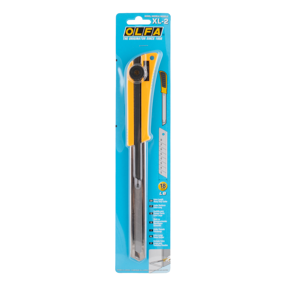 The OLFA 18mm Extended Reach Classic Ratchet-Lock Utility Knife is a heavy-duty cutting tool designed for reliability and precision. Its extended reach stainless-steel blade channel provides stability, making it ideal for tough jobs and hard-to-reach areas. The ratchet-based wheel lock ensures secure, adjustable cutting positions, while the ABS plastic handle with an anti-slip rubber insert offers durability and comfort. Featuring an ultra-sharp carbon-tool steel blade with eight snap-off segments, this knife delivers long-lasting performance with tool-free blade changes for efficiency. Preloaded with a 18mm LB Silver Snap Off Blade for use straight out of the package. Accepts all OLFA 18mm Heavy Duty Blades: LB, LBB, LFB, LWB, L-SOL, LH