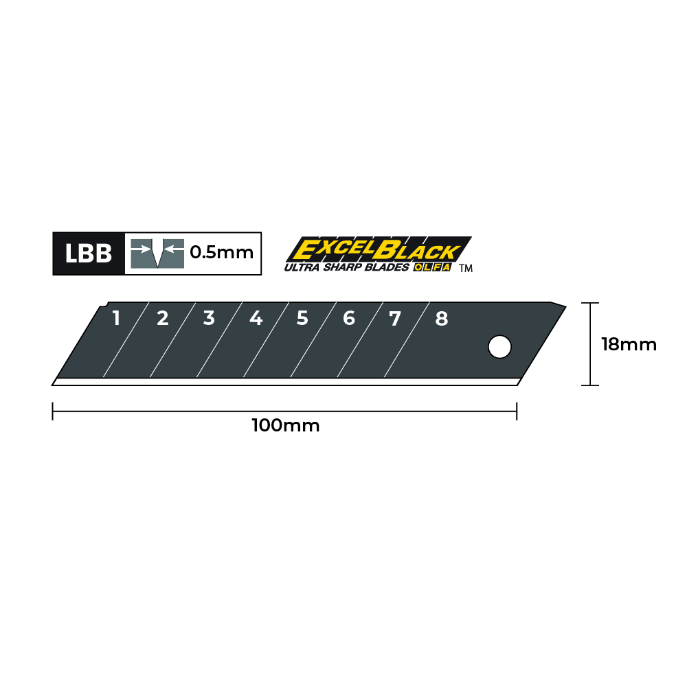 OLFA 18mm LBB Ultra-Sharp Black Snap Off Blade - 50 Pack