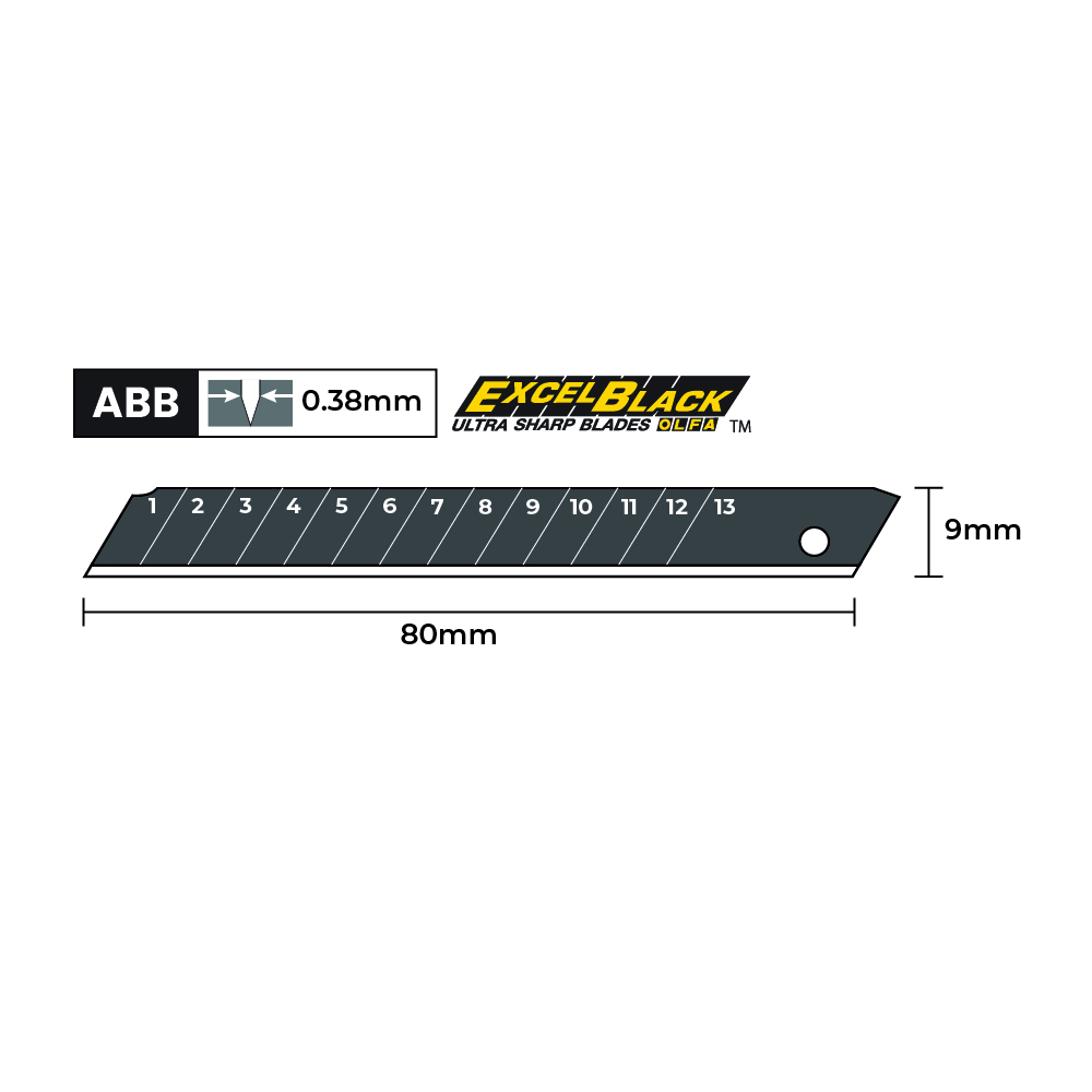 OLFA 9mm ABB Ultra-Sharp Black Snap Off Blade - 10 Pack