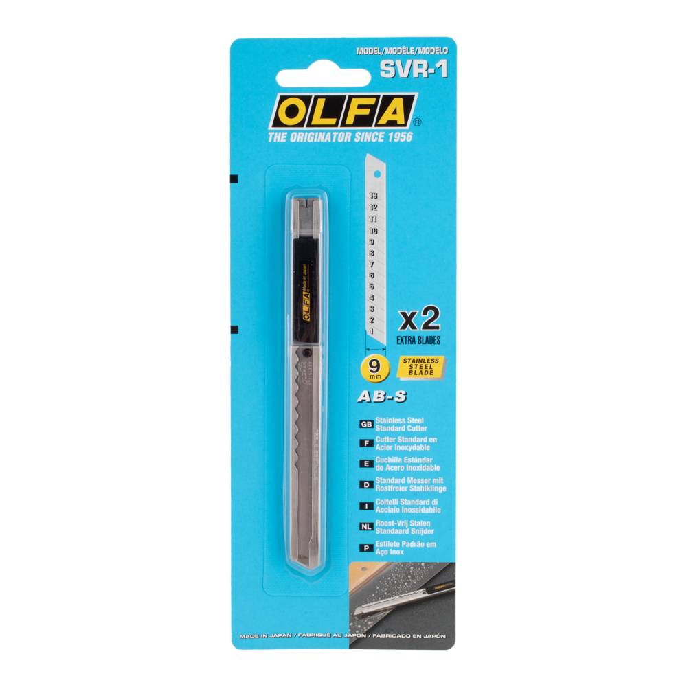 Preloaded with a 9mm AB-S Stainless Steel Snap Off Blade for use straight out of the package. Accepts all OLFA 9mm Precision Blades: AB, ABB, AB-S, AB-SOL