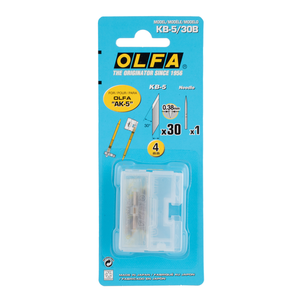 OLFA Multi-Purpose Art Blades are a versatile, high-precision tool designed for intricate crafting tasks. These premium blades, featuring an art needle at the tip, are compatible with the OLFA AK-5 Art Knives. Ideal for detailed work in arts, graphics, crafts, and hobbies, they ensure clean, sharp lines for both personal and industrial use. The pack of 30 blades offers convenience, ensuring you always have a fresh, sharp blade on hand. Lightweight and compact, the OLFA KB-5 Art Blades deliver exceptional accuracy and quality, making them a must-have for professionals and crafters alike, whether at home or on-the-go.