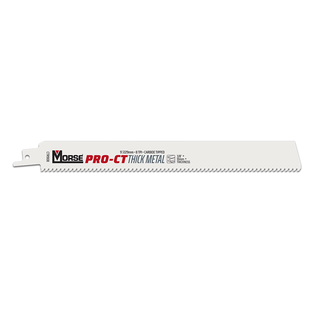 The Morse PRO Carbide Tipped Reciprocating Saw Blade is a performance-driven solution for cutting thick and challenging metals. Engineered for thick metal 3/8” (10mm) +, it features precision-ground carbide teeth and a robust 1” (25mm) blade width for superior strength and control. Designed to last significantly longer than traditional bi-metal blades, it offers less vibration and straighter cuts, increasing efficiency and accuracy. More cost-effective over time, it’s suitable for use on stainless steel, cast iron, threaded rod, EMT conduit, steel plate, and non-ferrous metals. Built for durability and performance.