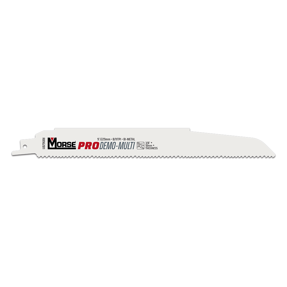 The Morse Pro Demo-Multi Reciprocating Saw Blades are engineered for superior performance in demolition cutting on wood and metal. Their design minimizes deflection, ensuring stability during wider cuts and increasing rigidity to withstand heavier feed pressures. This results in faster, smoother cutting with a refined finish. The blades feature high impact, heat, and wear resistance, making them ideal for aggressive cutting tasks while extending blade life. Constructed with bi-metal technology, these blades offer exceptional durability and longevity, delivering reliable results for demanding demolition projects.
