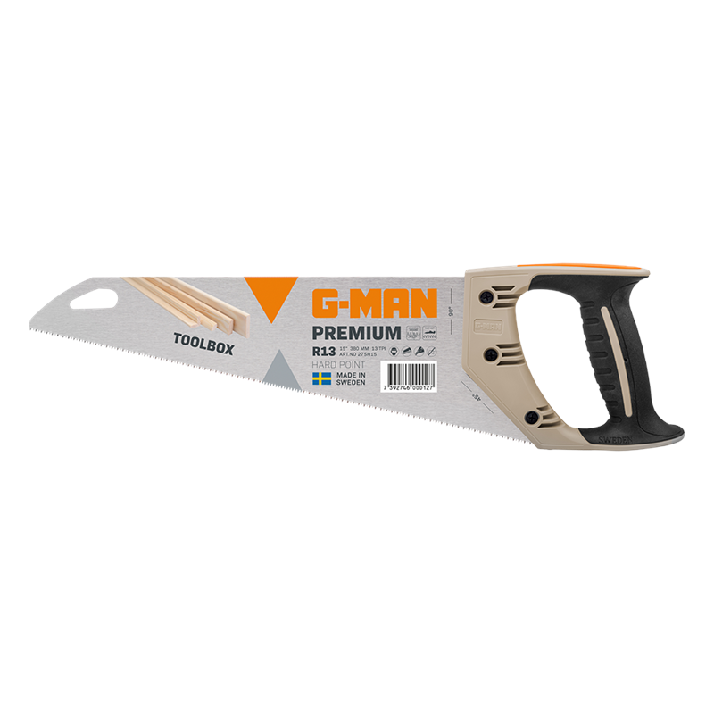 Introducing the G-MAN Hand Saw Mini, a professional mini saw for the toolbox, car, or the apartment. Equipped with R13 fleam toothing, its cross-sharpened teeth create sharp points, enabling smooth cuts across the grain. Thanks to their symmetrical design, these teeth excel in both push and pull strokes during sawing. Features very fine teeth for smooth sawing in number of materials. It boasts diamond ground teeth, hardpoint teeth for extended durability, and remarkable speed. Proudly manufactured in Sweden.