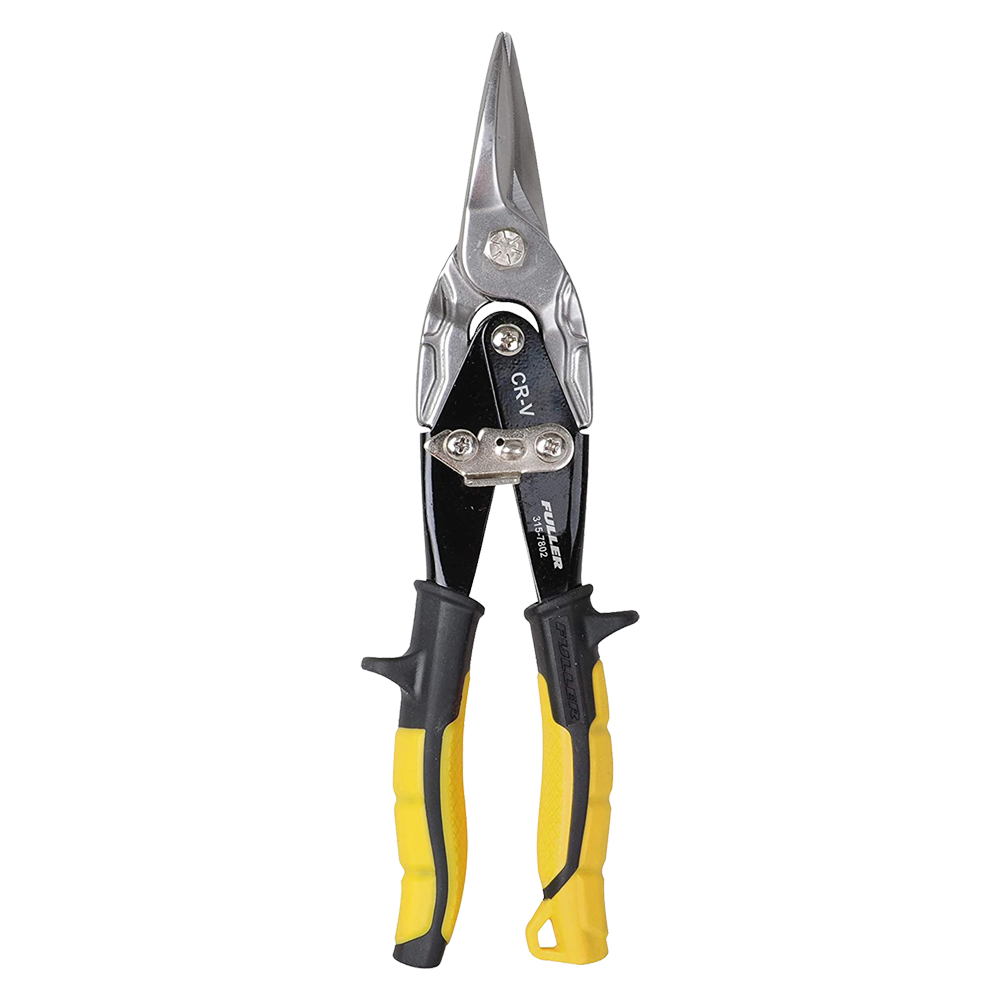 Straight cut aviation snips feature chrome vanadium serrated edge blades. They feature high strength alloy steel handles with compound lever action. Cushion vinyl grip handles are colour coded yellow and have a safety latch.