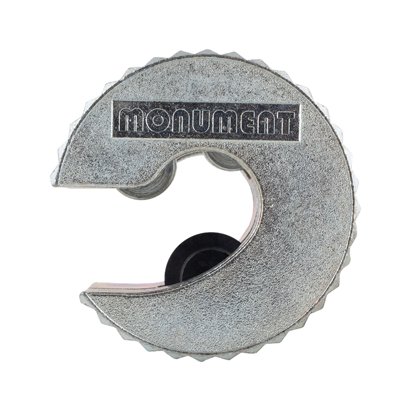 The Monument Autocut® Copper Pipe Cutter is designed for precise cutting of copper pipes. It features a zinc diecast body and a compact design suitable for use in confined spaces. The cutter clips onto the pipe and cuts in one direction only, producing a clean, square edge that reduces the risk of leaks and uneven joints. Each model is size-specific and will only cut the stated pipe diameter. Supplied with a preloaded, replaceable, heat-treated steel cutting wheel (spares available separately). Not suitable for stainless steel tubes. Made in Britain.