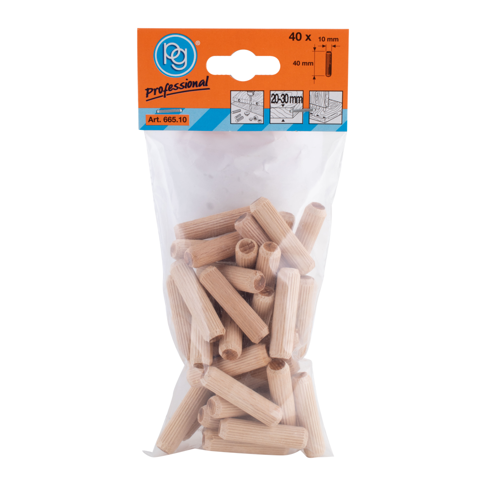 PG PROFESSIONAL 10mm Fluted Wooden Dowels - 40 Pack