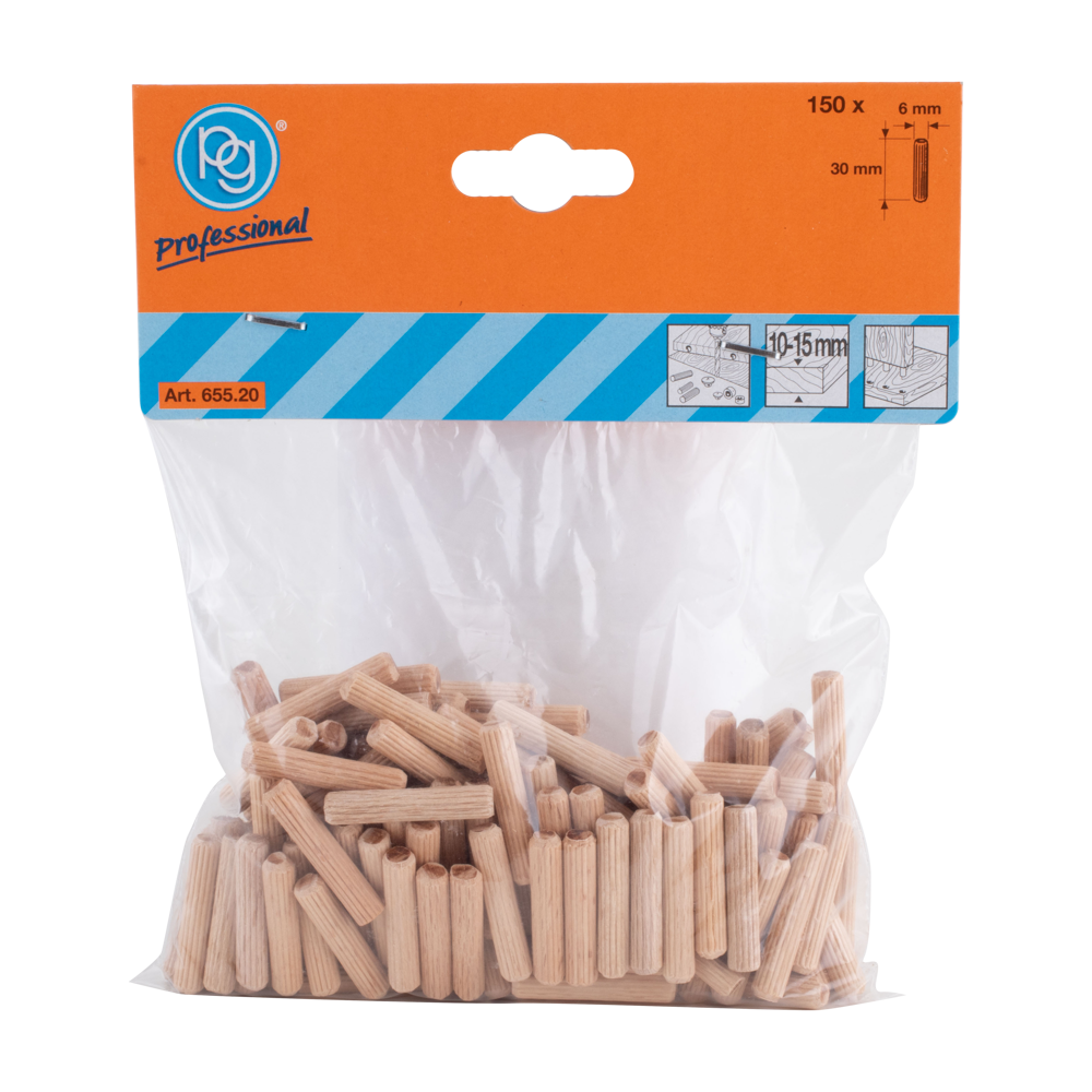 PG PROFESSIONAL 6mm Fluted Wooden Dowels - 150 Pack