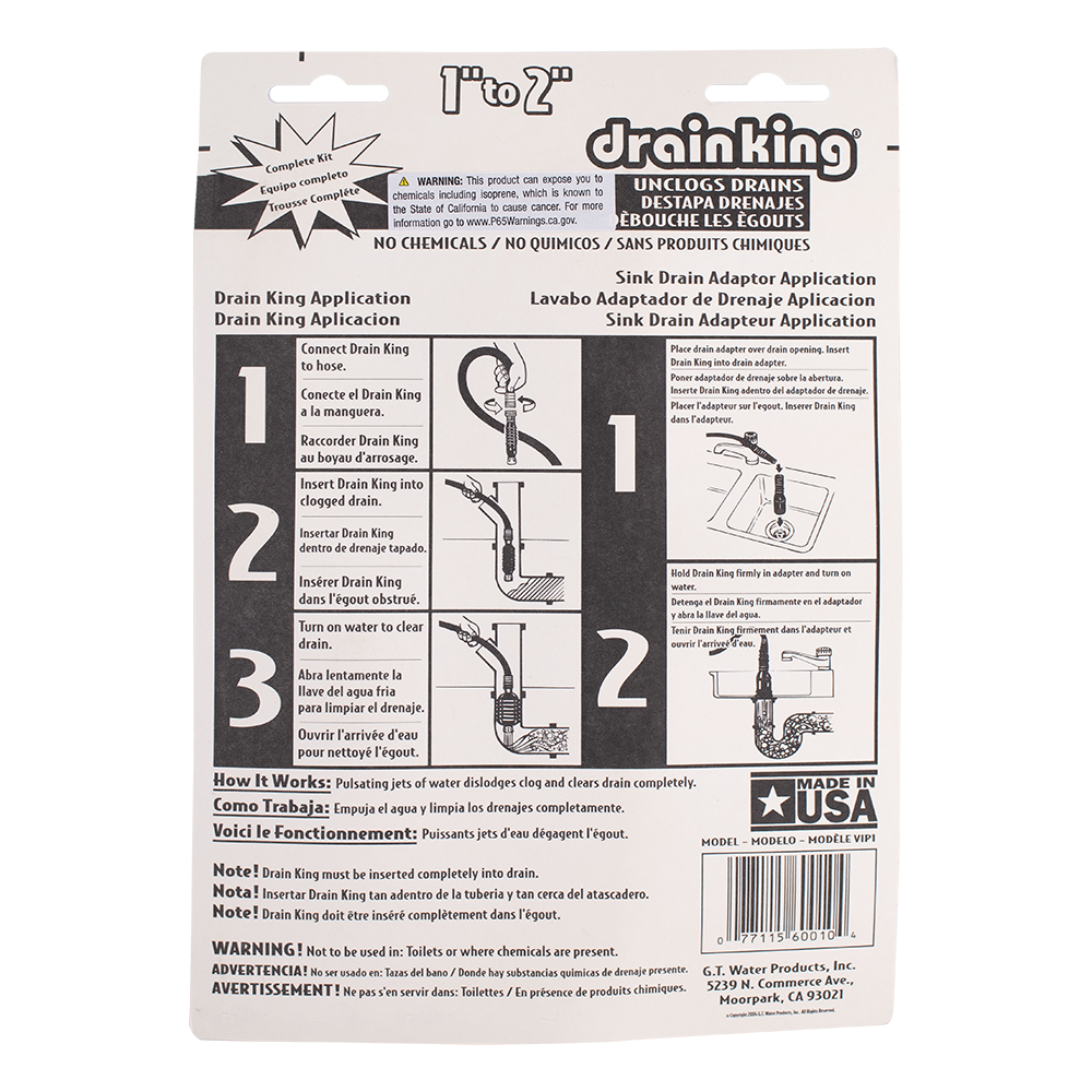 - Drain King is the original water-powered drain cleaner.