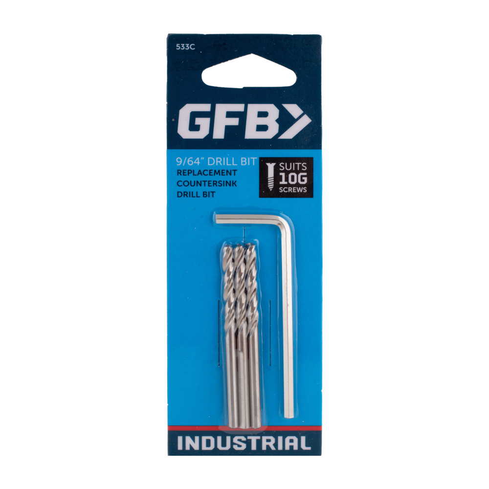 GFB Replacement Pilot Drills for Countersink drill bits come in a convenient pack of three, each equipped with a hex key for easy tightening and loosening within the countersink. These pilot drills are meticulously manufactured to the highest specifications, ensuring durability and precision. Designed with a 9/64" pilot size, they perfectly suit 10G screws and fit seamlessly into the No.10 GFB Adjustable Countersinks. Crafted from high-quality materials, they provide reliable performance for your drilling needs.