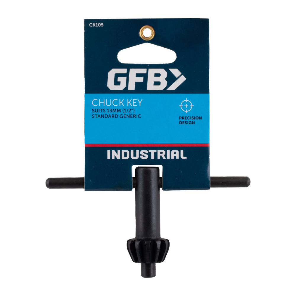 GFB Chuck Keys are crafted from high-quality steel, ensuring durability for rigorous industrial applications. Precision-engineered for reliability, they excel in tightening and loosening chuck jaws. Designed specifically for 13mm (1/2") standard generic drill chucks, these keys promise longevity and performance, making them essential tools for heavy-duty use.