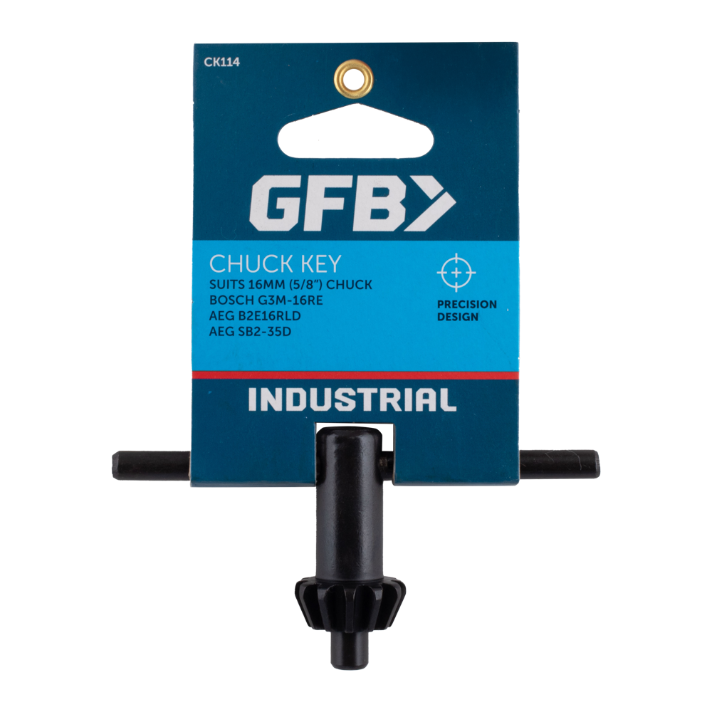 GFB Chuck Keys are crafted from high-quality steel, ensuring durability for rigorous industrial applications. Precision-engineered for reliability, they excel in tightening and loosening chuck jaws. Designed specifically for 16mm (5/8") Bosch G3M-16RE, AEG B2E16RLD & AEG SB2-35D drill chucks, these keys promise longevity and performance, making them essential tools for heavy-duty use.