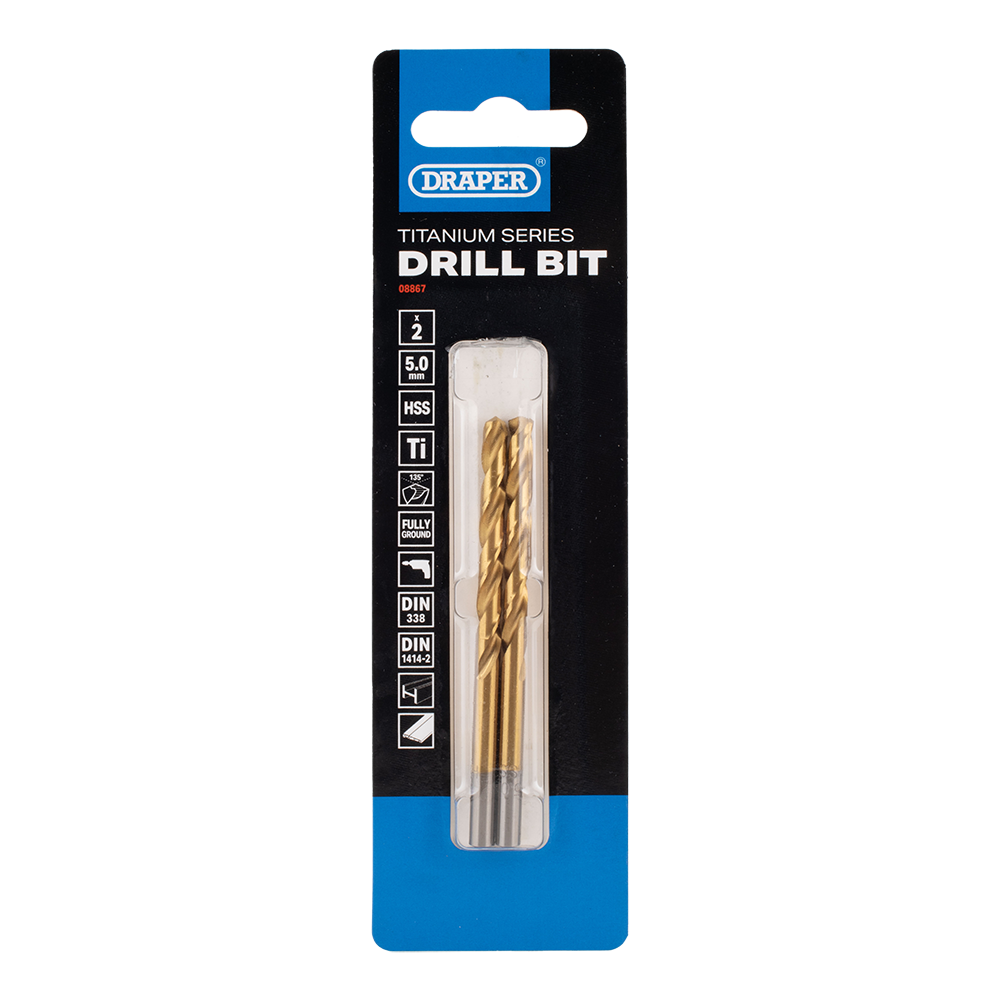 DRAPER HSS Titanium Drill Bit (5mm x 86mm) - 2 Pack