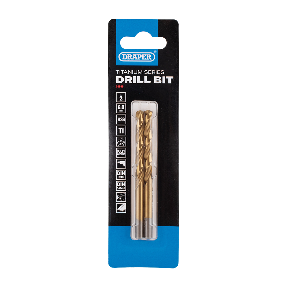 DRAPER HSS Titanium Drill Bit (6mm x 93mm) - 2 Pack