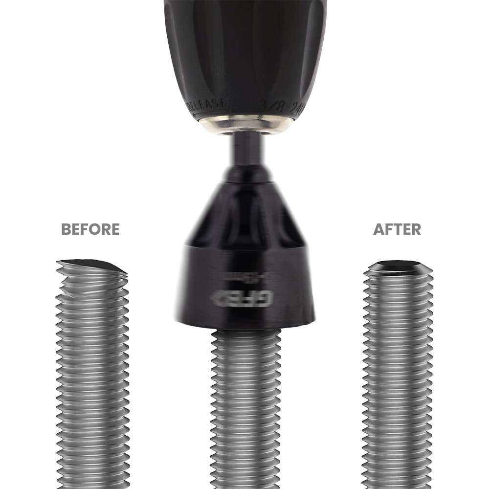 • Quickly cuts external chamfers on bolts and threaded rods.