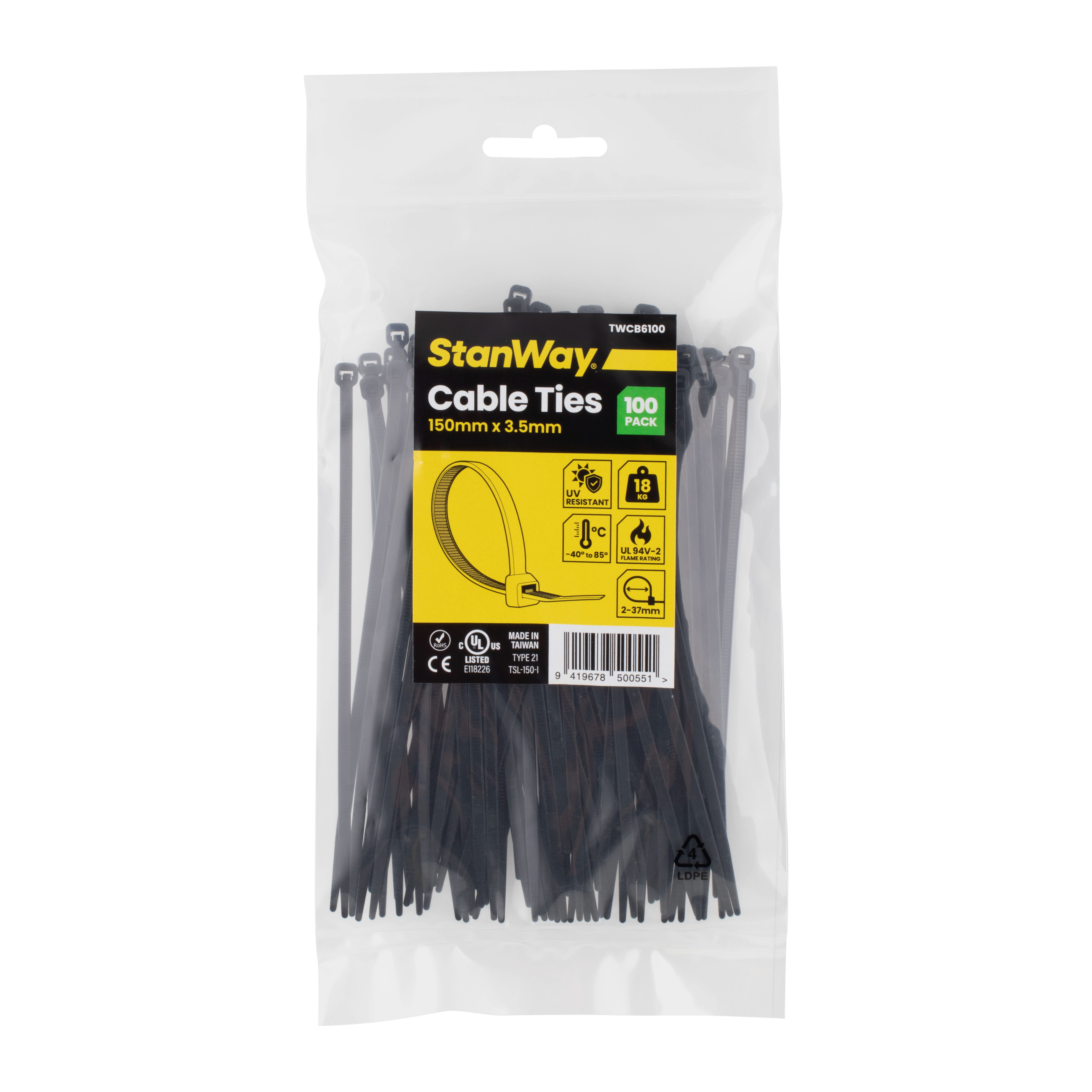 STANWAY Black Cable Ties (150mm x 3.5mm) - 500 Pack