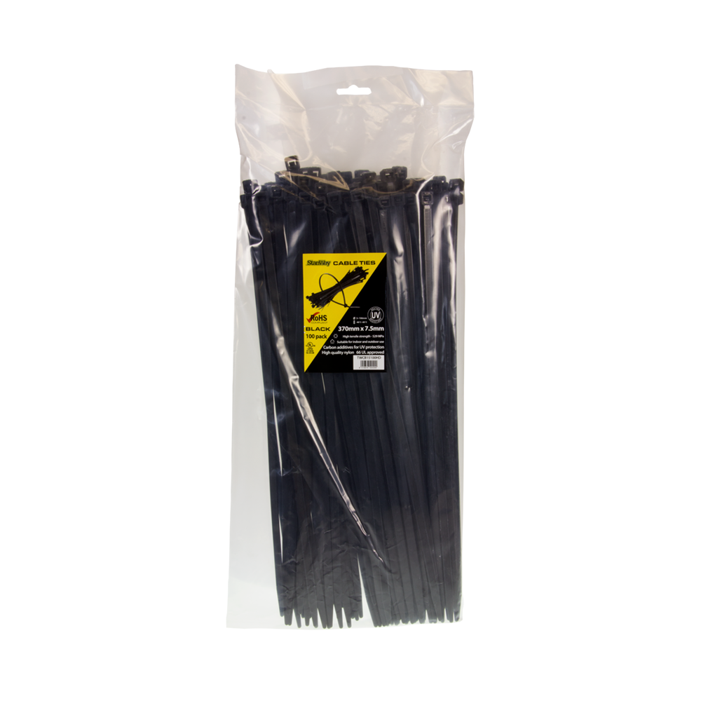 STANWAY Light Heavy Duty UV Black Cable Tie (370mm x 7.5mm) - 100 Pack