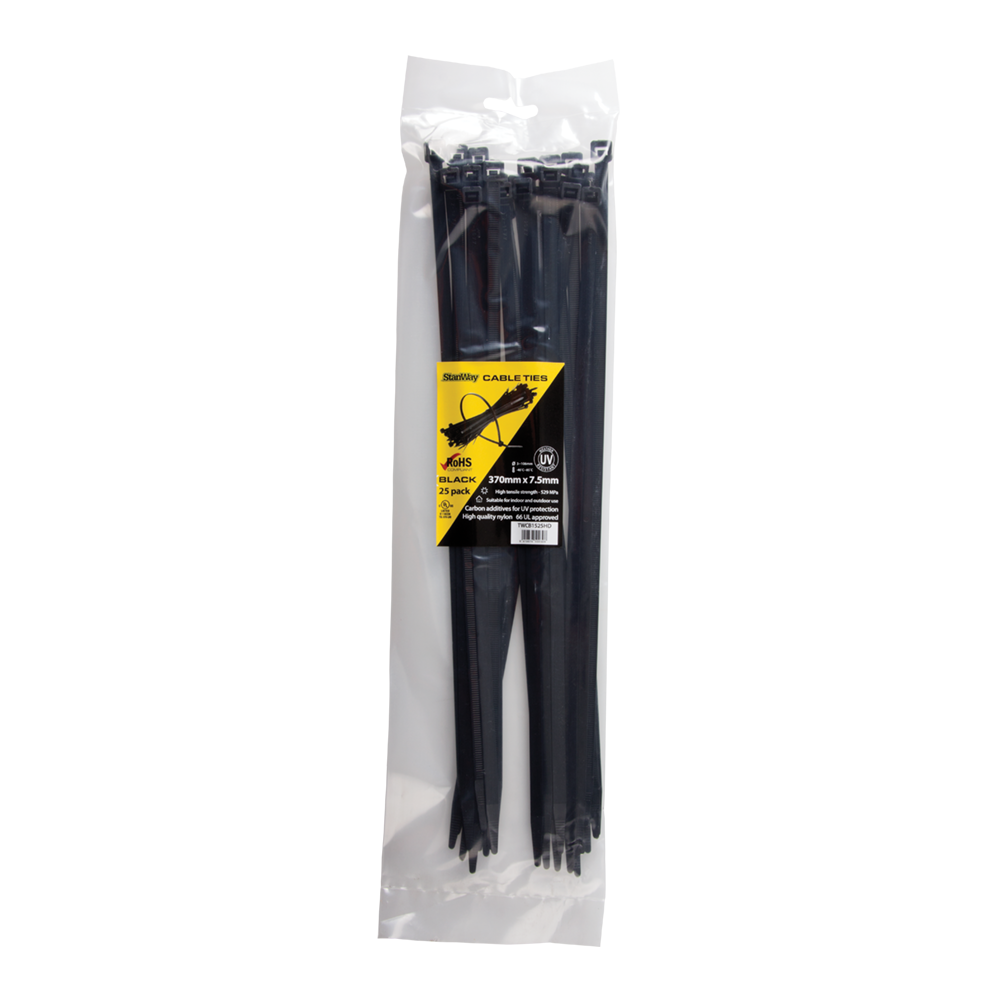STANWAY Light Heavy Duty UV Black Cable Tie (370mm x 7.5mm) - 25 Pack