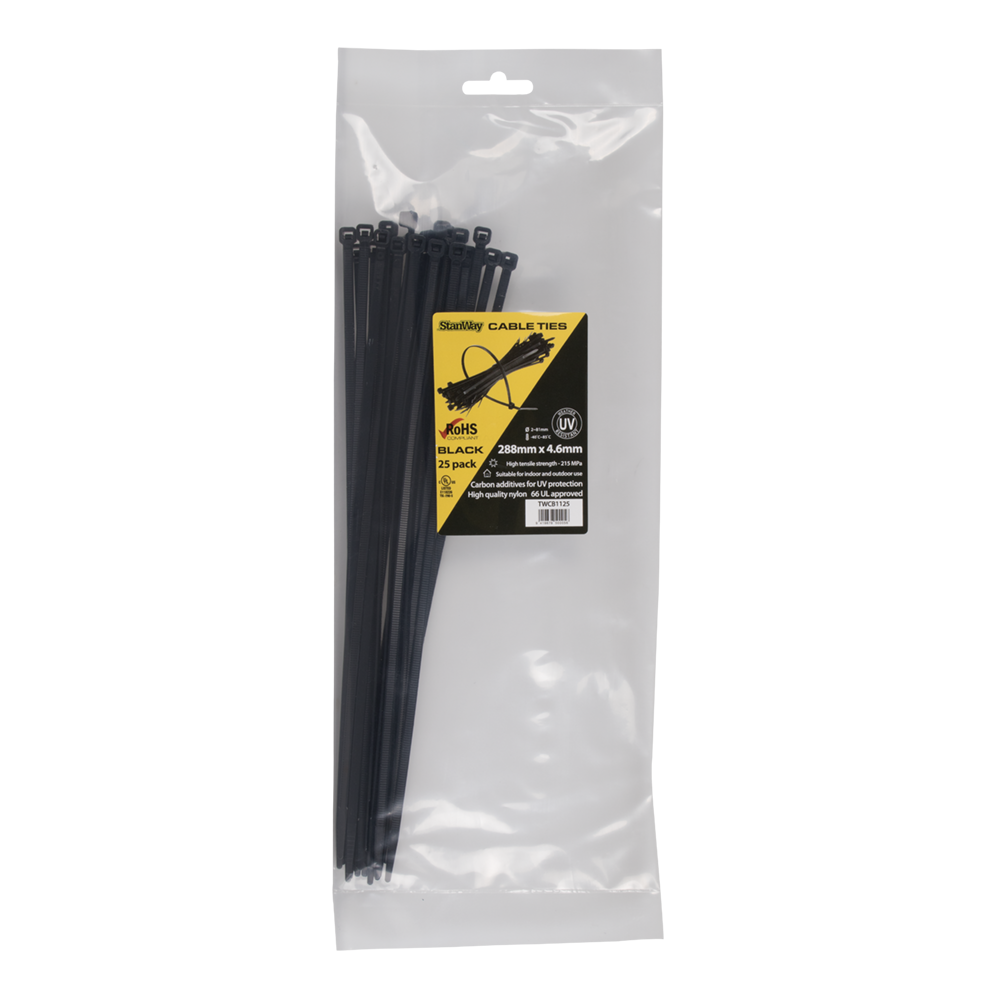 STANWAY UV Black Cable Tie (288mm x 4.6mm) - 25 Pack