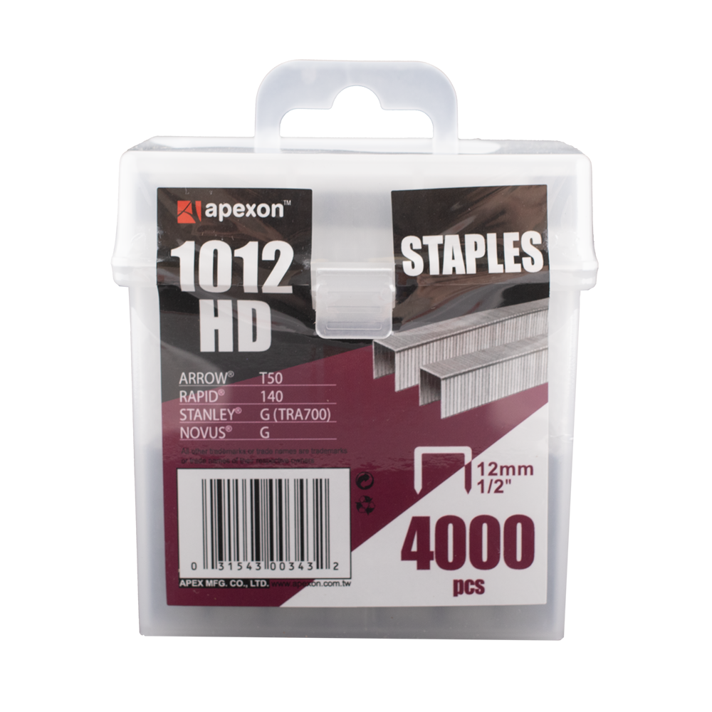The Apexon 12mm heavy duty staples excel in all heavy-duty stapling tasks, boasting superior quality and durability. Measuring 12mm in length (1/2”), with a crown width of 10.8mm and a thickness of 1.25mm, these staples are perfectly suited for Apexon heavy duty staplers and hammer tackers (refer to packaging for compatibility details). They are also interchangeable with Arrow T50 and Rapid 140 models. Coated in zinc galvanization, these staples offer exceptional resilience and longevity for demanding stapling applications. These come packaged in a durable plastic case, enhancing their protection and reducing the risk of staple breakage during storage and transport.