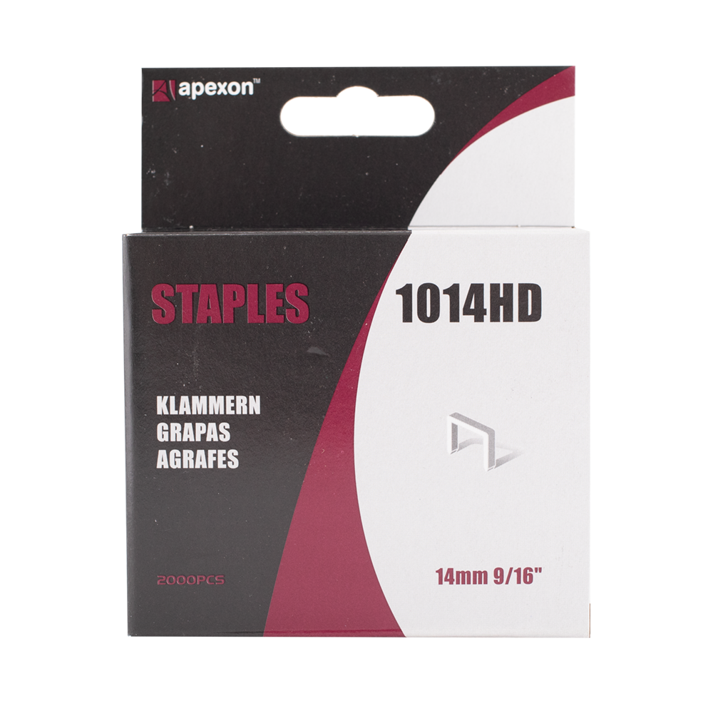 The Apexon 14mm heavy duty staples excel in all heavy-duty stapling tasks, boasting superior quality and durability. Measuring 14mm in length (9/16”), with a crown width of 10.8mm and a thickness of 1.25mm, these staples are perfectly suited for Apexon heavy duty staplers and hammer tackers (refer to packaging for compatibility details). They are also interchangeable with Arrow T50 and Rapid 140 models. Coated in zinc galvanization, these staples offer exceptional resilience and longevity for demanding stapling applications.