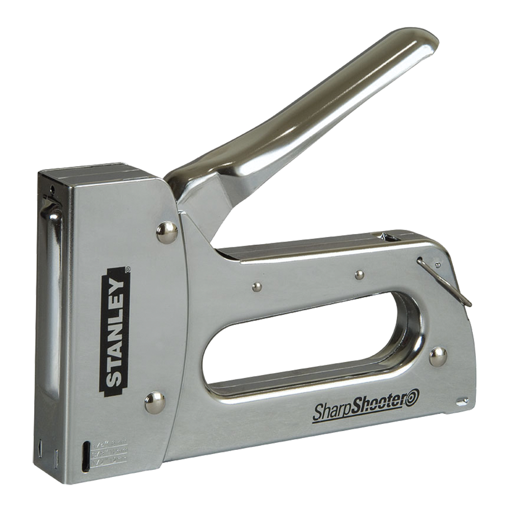 Stanley Heavy Duty Staple Gun. The heavy-duty staple gun is durable and reliable. Its chrome-plated all steel construction is tough enough to survive dusty dirty job-sites. With its bottom load channel to load staples for fast and its handle lock for easy storage. This tool has enough power to drive staples into thick dense wood day in and day out. all day long.