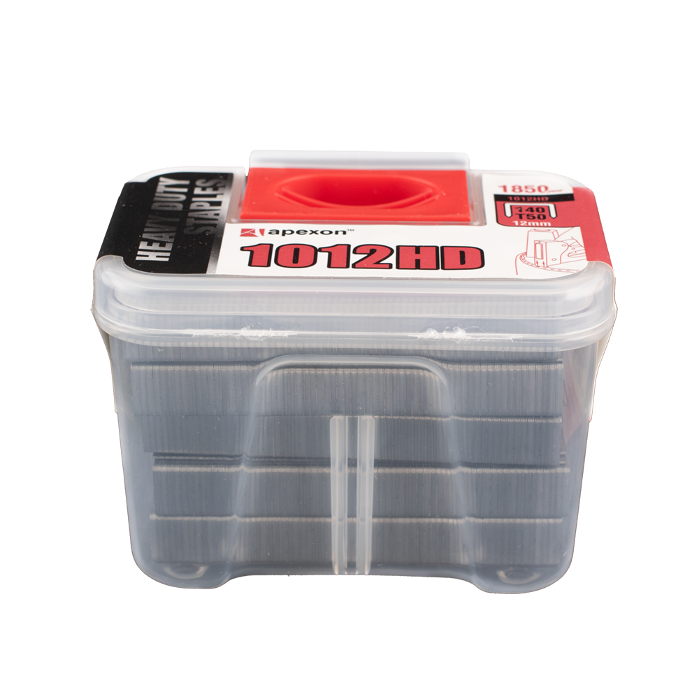 The Apexon 12mm heavy duty staples excel in all heavy-duty stapling tasks, boasting superior quality and durability. Measuring 12mm in length (1/2”), with a crown width of 10.8mm and a thickness of 1.25mm, these staples are perfectly suited for Apexon heavy duty staplers and hammer tackers (refer to packaging for compatibility details). They are also interchangeable with Arrow T50 and Rapid 140 models. Coated in zinc galvanization, these staples offer exceptional resilience and longevity for demanding stapling applications. These come packaged in a durable plastic case, enhancing their protection and reducing the risk of staple breakage during storage and transport. Additionally, the case is equipped with a convenient belt clip, allowing for effortless transportation and storage.