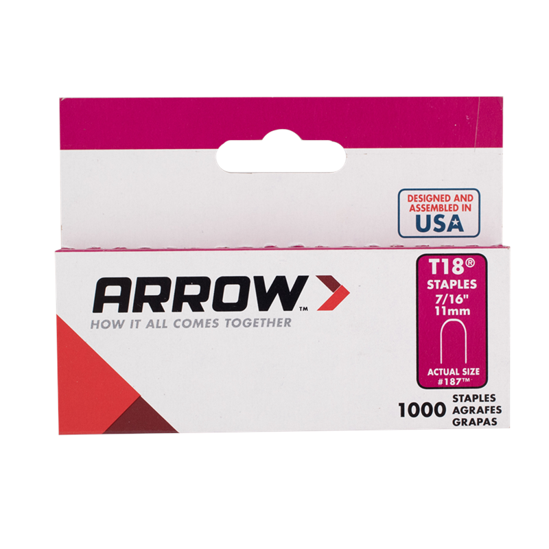 The T18 Genuine Arrow Staples are specialist round-crown staples for nailing telephone and low-voltage cables. Made from quality steel material, it ensures your stapling is strong and long-lasting – first time, every time. Available in 10mm (3/8”) and 11mm (7/16”) sizes with a rounded crown width of 5mm (3/16”). Compatible with the Arrow ART18 Telephone Wire Tacker and other brands.