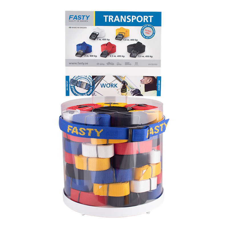 Our Fasty straps are the ultimate solution for all your securing needs at home, thanks to their user-friendly design and impressive durability. With endless applications, our straps can hold, secure, load, and tie together anything you need, giving you peace of mind that your items are safe. The straps are 25mm wide and have a remarkable strength of 400kg, and come in a variety of lengths and colors to suit your specific needs. The buckles are made of steel with a high zinc/nickel anti-corrosion coating, making them considerably stronger and lighter than standard zinc cast buckles on the market. Additionally, the large opening on the buckles makes threading the strap through much easier, even when wearing gloves. Our straps are made of High Tenacity PolyPropylene, which makes them incredibly durable and UV-resistant, with high strength and color resistance. And, when you’re done with them, they’re 100% recyclable. Proudly made in Sweden.