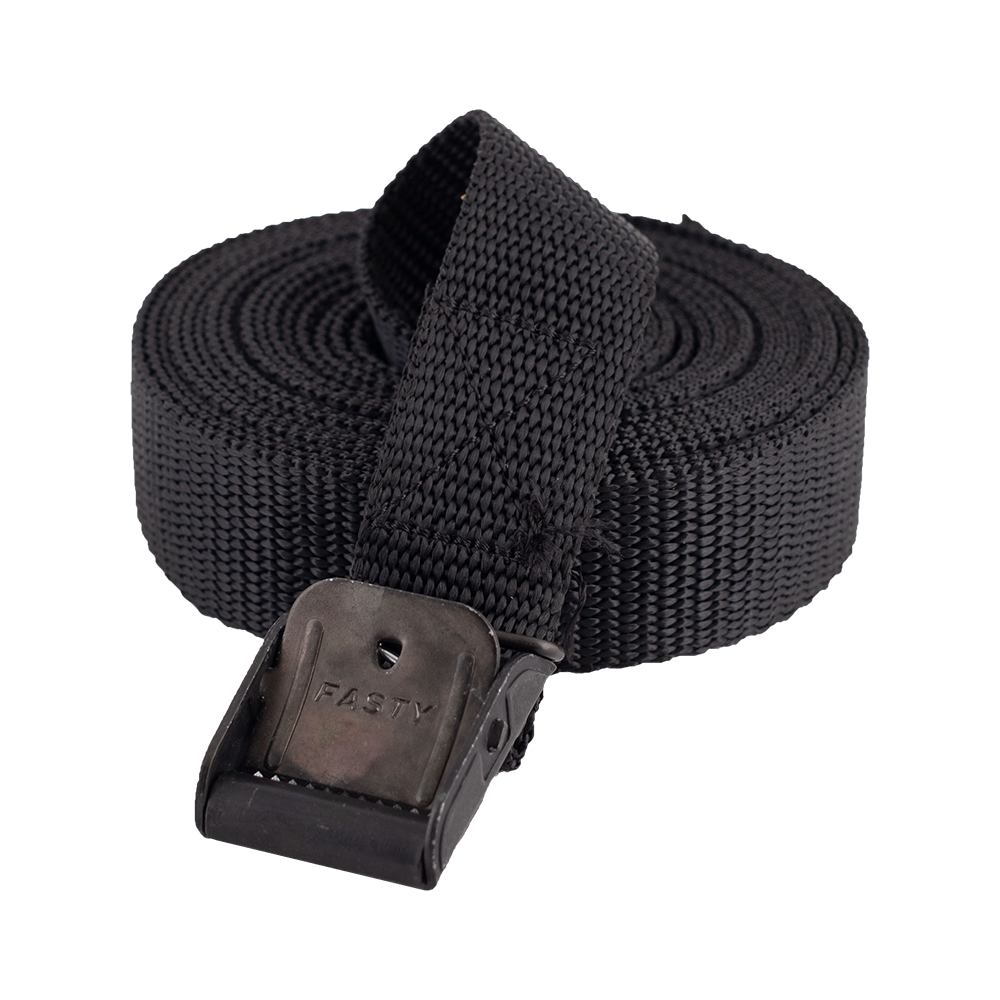 Our Fasty straps are the ultimate solution for all your securing needs at home, thanks to their user-friendly design and impressive durability. With endless applications, our straps can hold, secure, load, and tie together anything you need, giving you peace of mind that your items are safe. The straps are 25mm wide and have a remarkable strength of 400kg, and come in a variety of lengths and colors to suit your specific needs. The buckles are made of steel with a high zinc/nickel anti-corrosion coating, making them considerably stronger and lighter than standard zinc cast buckles on the market. Additionally, the large opening on the buckles makes threading the strap through much easier, even when wearing gloves. Our straps are made of High Tenacity PolyPropylene, which makes them incredibly durable and UV-resistant, with high strength and color resistance. And, when you’re done with them, they’re 100% recyclable. Proudly made in Sweden.