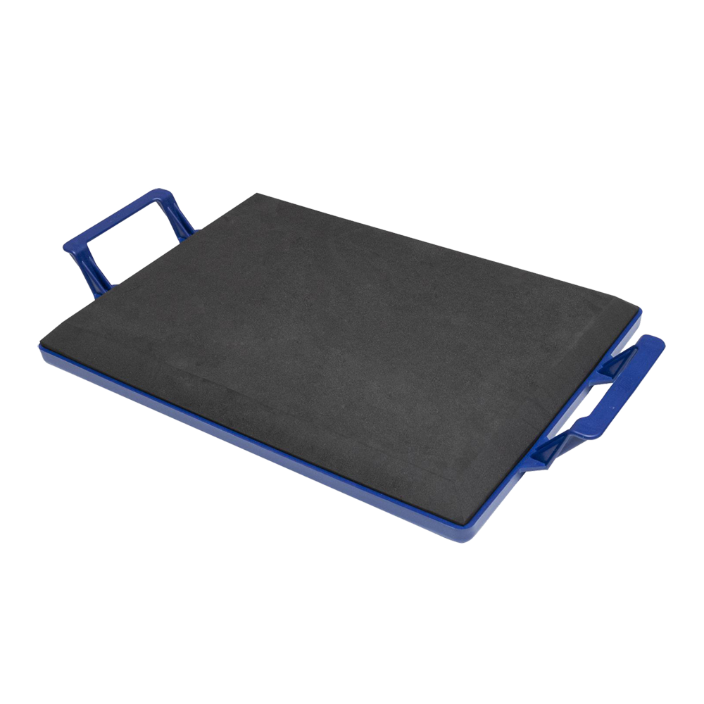 Offers extra-comfortable support for knees. Extra large handle grips. Black foam pad securely fastened to large polypropylene tray.