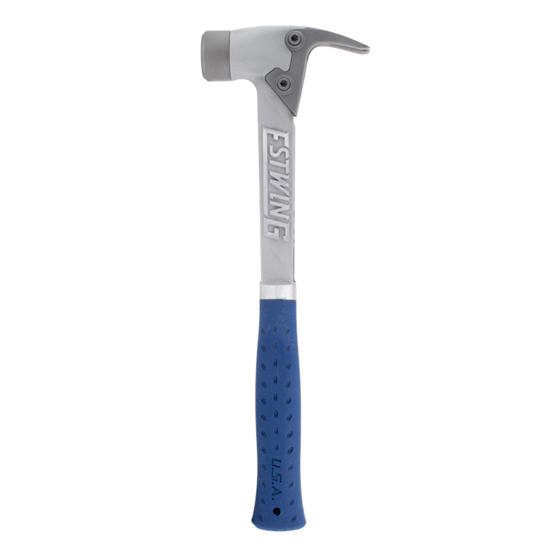 The Estwing AL-PRO™ is made from forged aircraft aluminium alloy, which is lighter than titanium. Vibration dampening shot is built into the head giving every blow the maximum force. The PERMA-CAP™ steel head and interlocking steel claw give this hammer durable strength where it is most needed, and the reduced claw length provides increased leverage. There is a magnetic nail starter in the head. The AL-PRO delivers power in a lighter weight package, for the best performance in a hammer with our patented Shock Reduction Grip®. Made in the U.S.A.