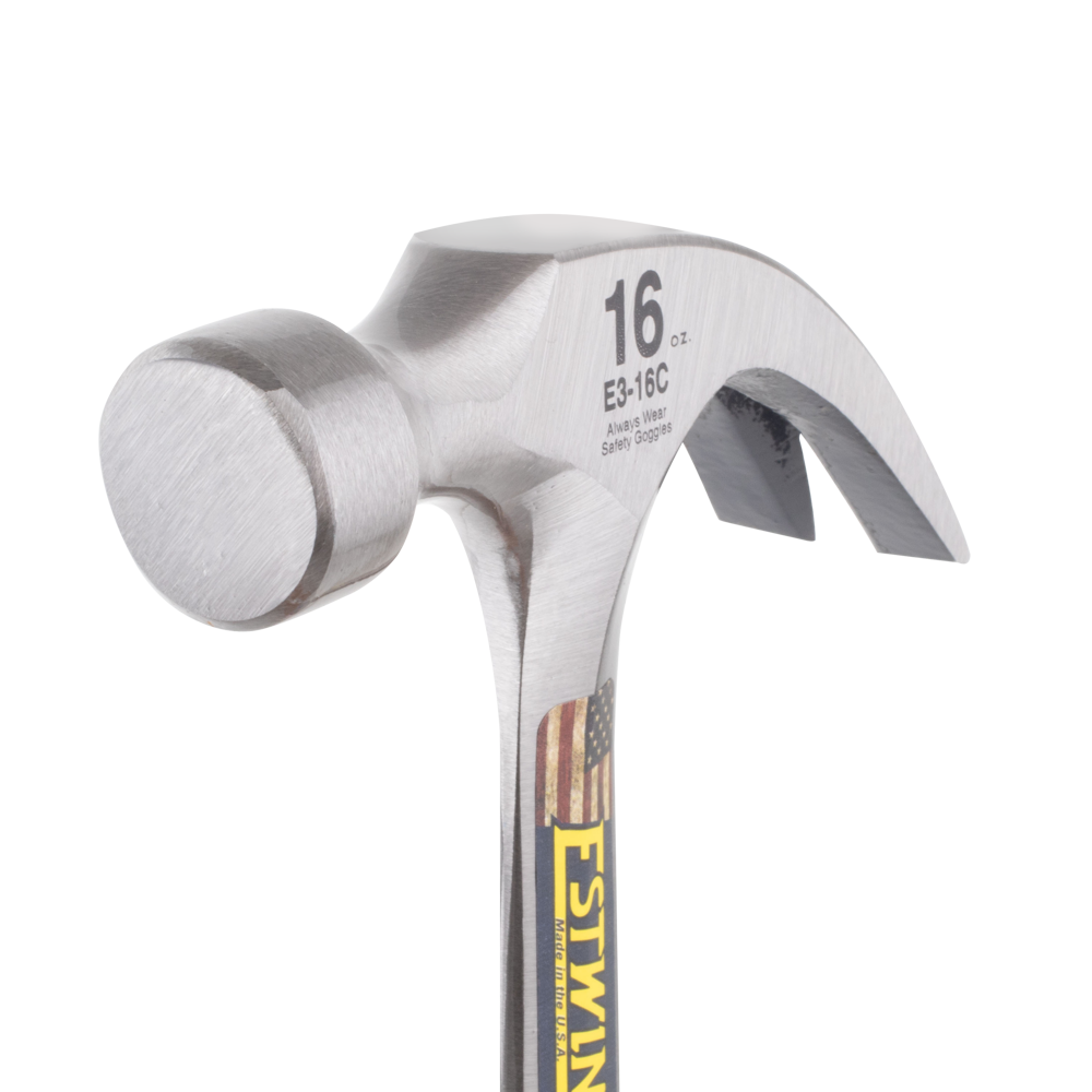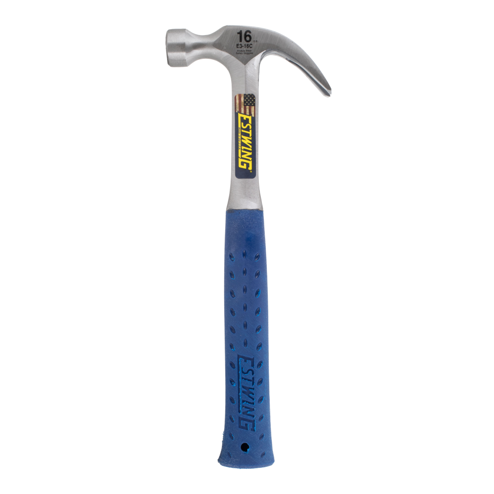 The Estwing Curved Claw Hammer is made from one solid piece of American steel, offering maximum strength and durability. It is fully polished, with the head and handle forged in one piece for long-lasting performance. The patented Shock Reduction Grip® reduces vibration impact by up to 70%. This nylon-vinyl grip is permanently bonded for comfort and durability. The hammer provides unsurpassed balance and temper for better control. It also features a smooth face, ideal for clean, mark-free striking. Made in the U.S.A.