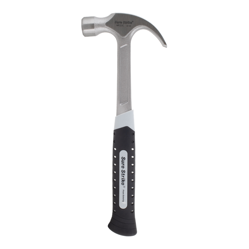The Estwing Curved Claw Hammer is made from one solid piece of American steel, offering maximum strength and durability. It is fully polished, with the head and handle forged in one piece for long-lasting performance. The patented Shock Reduction Grip® reduces vibration impact by up to 70%. This nylon-vinyl grip is permanently bonded for comfort and durability. The hammer provides unsurpassed balance and temper for better control. It also features a smooth face, ideal for clean, mark-free striking. Made in the U.S.A.