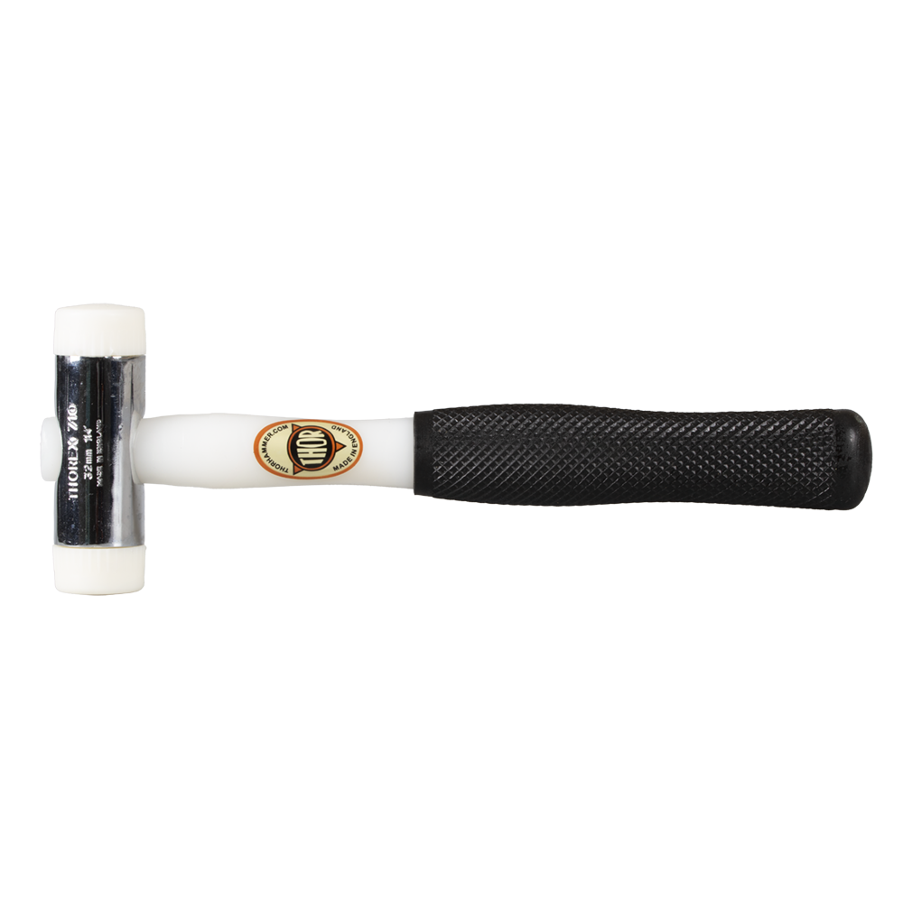 Faces are designed to wear and to be replaced by hand. All faces are one piece moulded. No metal pegs or inserts to damage the workpiece when worn. Serrations in the metal head prevent faces coming loose during use. Faces have a shoulder for extra strength and to prevent fracture from misdirected blows. Used due to the easily interchangeable heads; as a multi purpose striking tool in most assembly applications including engineering; furniture; shop fitting; partitioning; double glazing; injection moulding dies etc. Faces are designed to wear and can be replaced.