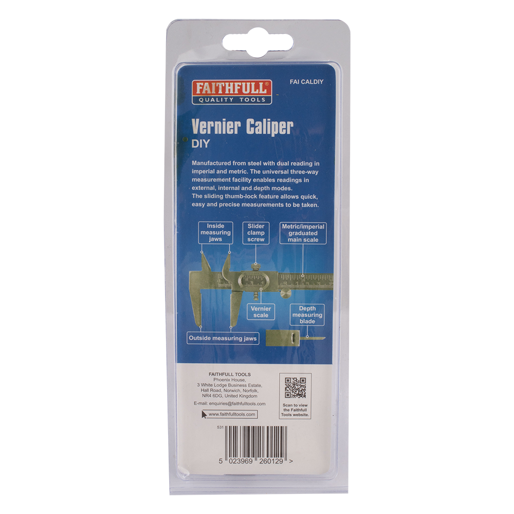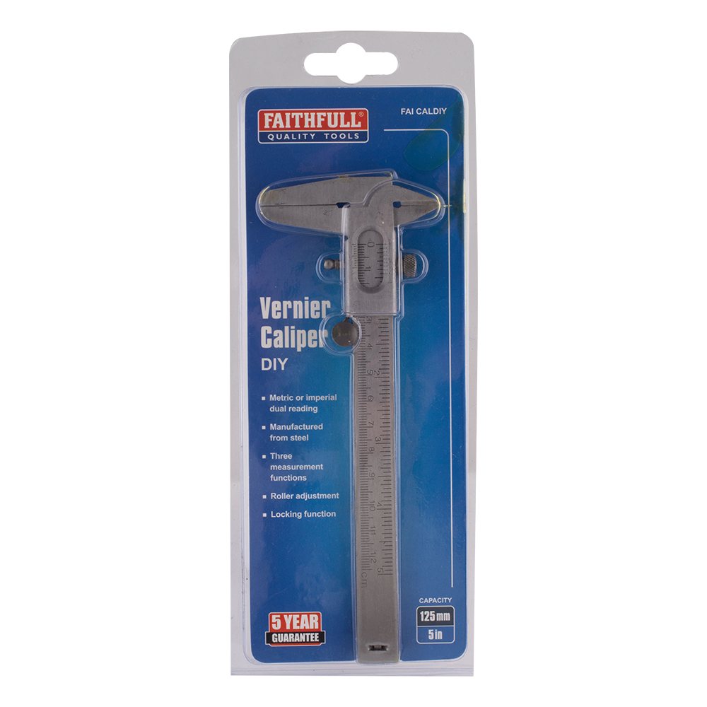 The Faithfull DIY Vernier Caliper is a versatile and durable tool manufactured from steel, designed to meet the needs of both metric and imperial measurement systems. With its dual reading capabilities, it provides the user with precise and efficient measurements, offering a maximum capacity of 125mm or 5 inches. Its three-way measurement facility allows for external, internal, and depth measurements, making it a versatile choice for various DIY projects. The sliding thumb-lock feature ensures that measurements can be quickly and accurately obtained, enhancing the user's precision. Whether you prefer the metric or imperial system, this caliper's dual reading and locking function make it a handy and essential tool for any DIY enthusiast.