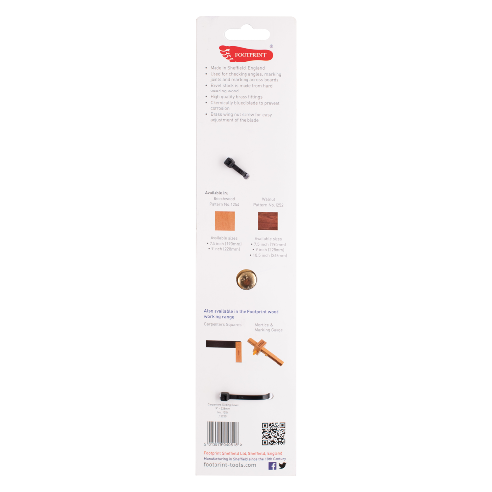 The Footprint sliding bevel, also known as T Bevel, is a crucial tool for any woodworker. It is commonly used for checking angles, marking joints or marking across boards. The sliding bevel is constructed with a chemically blued blade that protects against corrosion, ensuring long-term use. Additionally, the tool features a brass wing nut, which makes adjustment easy and straightforward. The sliding bevel is made with Beechwood, a less expensive and slightly lighter wearing alternative to Walnut. This makes it an ideal material for beginners or those looking for an economical option. All of these features make the Footprint sliding bevel an indispensable tool for anyone working with wood. Proudly made in Sheffield, Britain.