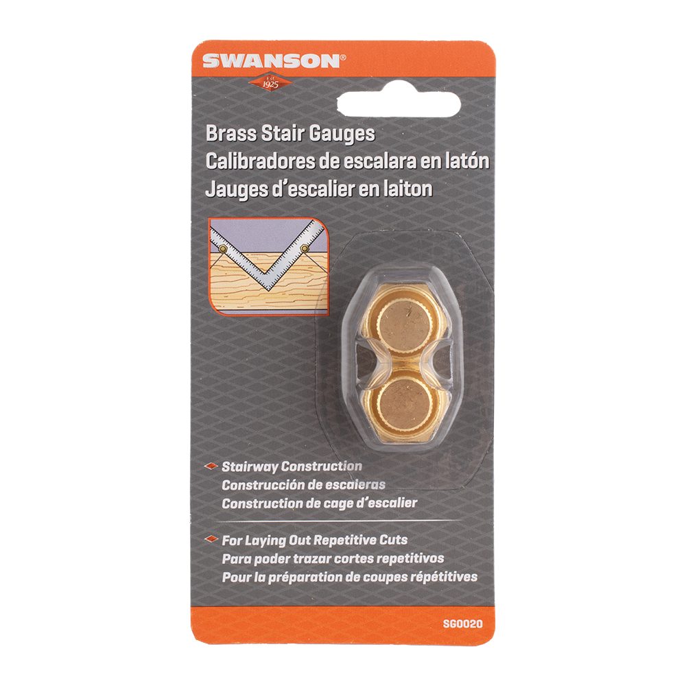 Swanson® brass stair gauges are perfect for custom stair installation projects, providing precision accuracy and facilitating repetitive cuts. Designed specifically for stairway construction, these gauges offer exceptional accuracy and reliability, ensuring that each cut is perfectly aligned. With the ability to layout repetitive cuts, they streamline the process and enhance efficiency. The solid brass construction of Swanson® stair gauges guarantees durability and longevity, making them a reliable tool for professionals and DIY enthusiasts alike. Whether you're working on a new stair installation or renovating an existing staircase, these stair gauges are an essential companion, offering reliable and precise measurements every time.