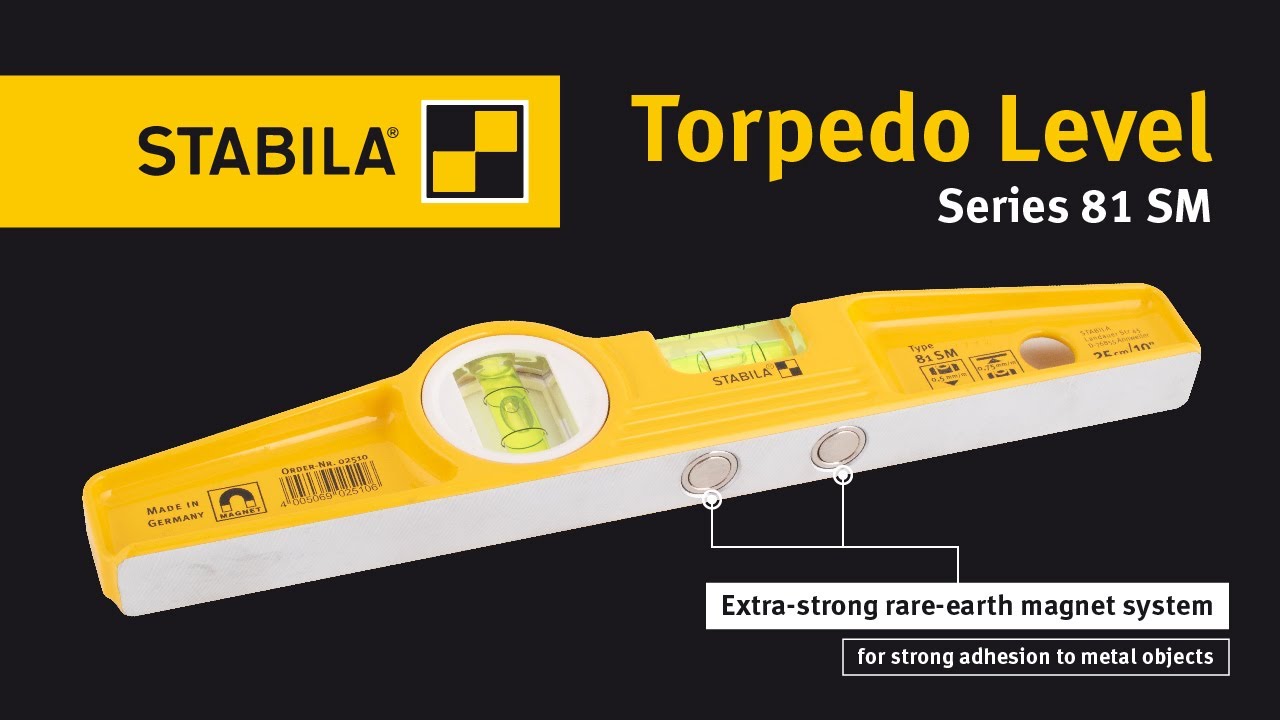 This compact bevelled shaped level has a die-cast aluminum body which makes it one of the sturdiest levels that STABILA makes. This level is for all those who need both hands free when aligning and levelling on steel frame structures. The 81 SM Torpedo has a rare earth magnet system with strong holding-power. The vial is precisely aligned with the milled measuring surface then locked together. This gives you years of accurate levelling.