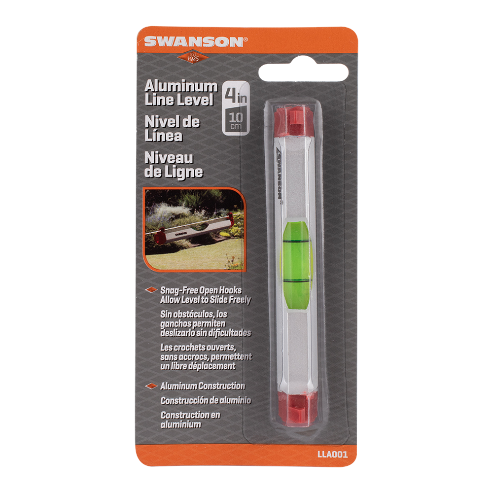 The Swanson heavy-duty aluminum line level is designed for effortless sliding on string and filament lines. Its snag-free open hooks ensure smooth movement along the line without any obstructions. With a length of 102mm (4 inches), this level is compact and convenient to use. Crafted from high-grade aluminum, it guarantees durability and sturdiness. Whether you're working on construction projects or DIY tasks, this line level is a reliable tool for achieving accurate and level measurements. Its efficient design and quality construction make it a must-have for professionals and DIY enthusiasts alike.