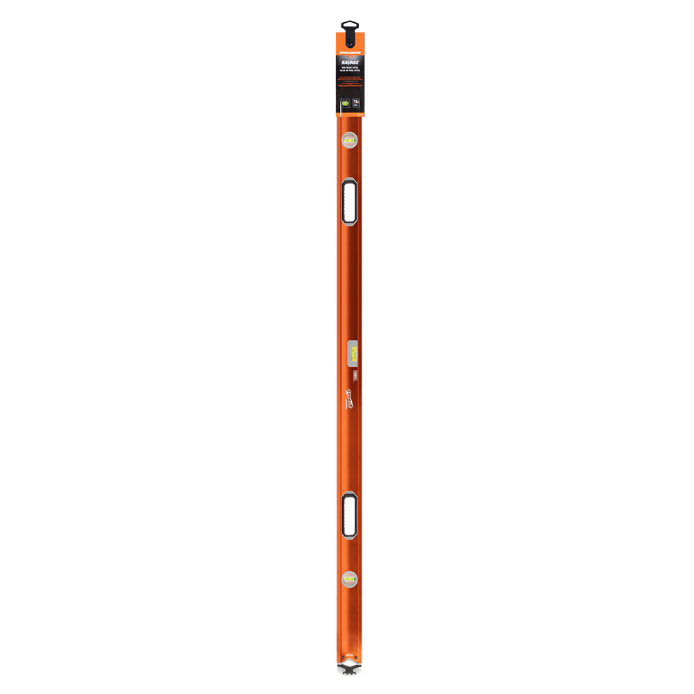 The SAVAGE™ Box Beam Level is renowned for its unparalleled accuracy and exceptional durability. Its name derives from the unique construction of the frame, which features a rectangular design visible when cut in half. This construction grants these spirit levels unmatched robustness. The level boasts a continuous dual rail frame, ensuring stability and precision. With a remarkable 0.029° vial accuracy, it guarantees accurate readings. The level is meticulously machined for optimal performance. It also features Supershock® end caps and Diamond™ bumpers, effectively preventing any marring. The Savage™ Strength Frame is 80% stronger than comparable models, providing superior strength and longevity. The level's acrylic block vials and multi-ring vials further enhance its precision and reliability.