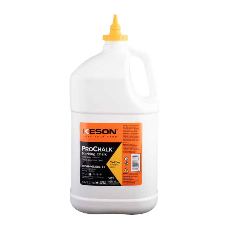 Keson ProChalk® High Visibility Yellow Marking Chalk is a high-quality marking chalk that is proudly made in the United States. This marking chalk is designed for exterior applications such as corrections, plumbing, electrical, roofing, and masonry. It is ideal for highly visible applications that will wear or wash away naturally in a few days. The chalk has a permanence ranking of 2, which means it will last longer than other temporary marking chalks, but still fade away over time. This product comes in a convenient 227g (8oz) bottle, making it easy to use and transport to job sites. Whether you are a professional contractor or a DIY enthusiast, Keson ProChalk® High Visibility Marking Chalk is a reliable and effective option for your marking needs.