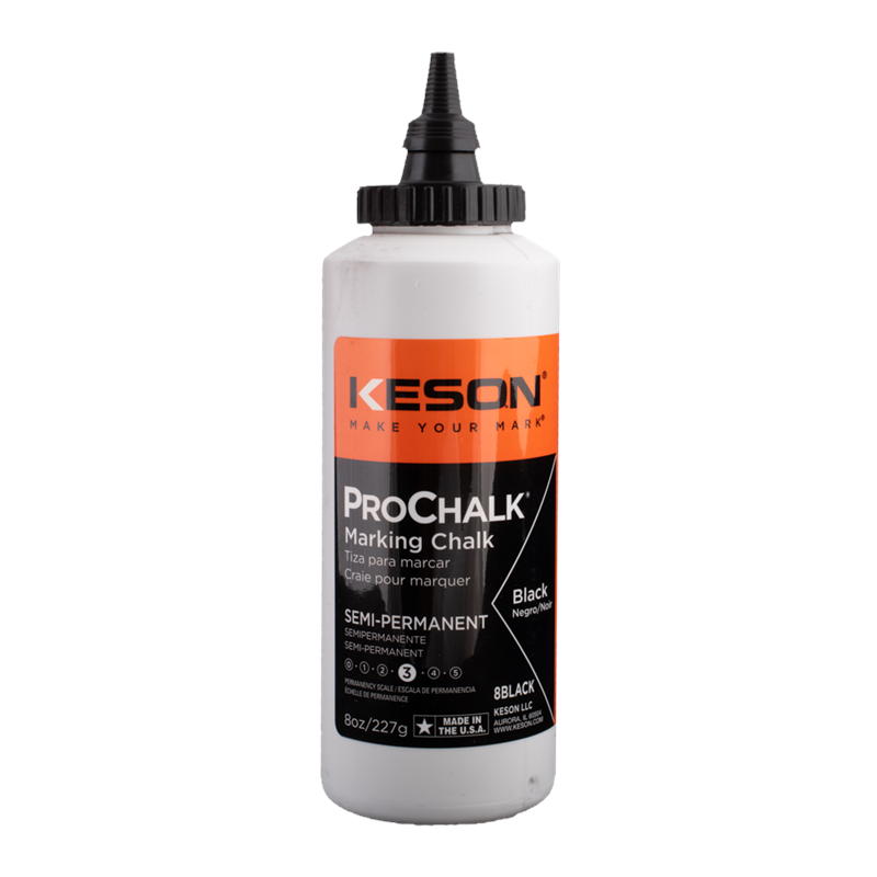 Keson ProChalk® Standard White Marking Chalk is a high-quality marking chalk that is proudly made in the United States. It is a versatile product that can be used for a variety of applications such as interior layout, roofing, siding, and paneling, both for interior or exterior use. This chalk is perfect for your basic chalk line needs that are easier to clean up or let wear away naturally. Its permanence ranking of 1 ensures that it will not leave behind any residue, making it ideal for use on surfaces that need to be kept clean. This product comes in a convenient 227g (8oz) bottle, making it easy to use and transport to job sites. Overall, Keson ProChalk® Standard Marking Chalk is a reliable and practical choice for anyone in need of high-quality marking chalk.