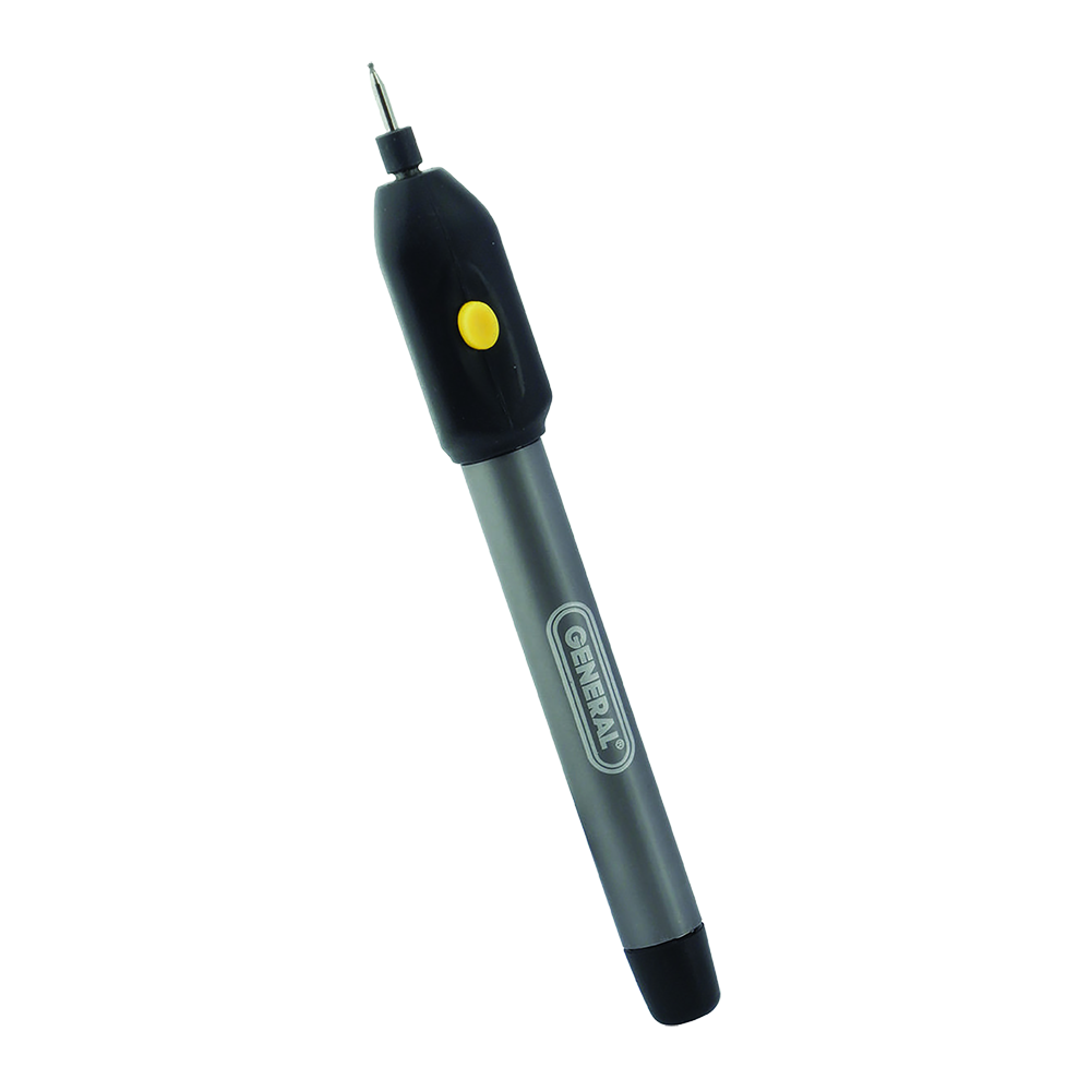 This new and exciting tool enables precision cordless engraving anywhere by anyone from professional technicians and mechanics to homeowners and DIYers. Users can protect all types of valuables with identifying markings and even perform delicate personalization of items. Designed in-house by Generals engineering team (Patent Pending) the engravers powerful 20000 RPM motor is powered by just two AAA batteries and enables engraving in glass; metal; ceramic and plastic. An aluminium body offers superior durability and the one-of-a-kind tri-lobe ergonomic grip provides the ultimate in comfort and ease-of-use.