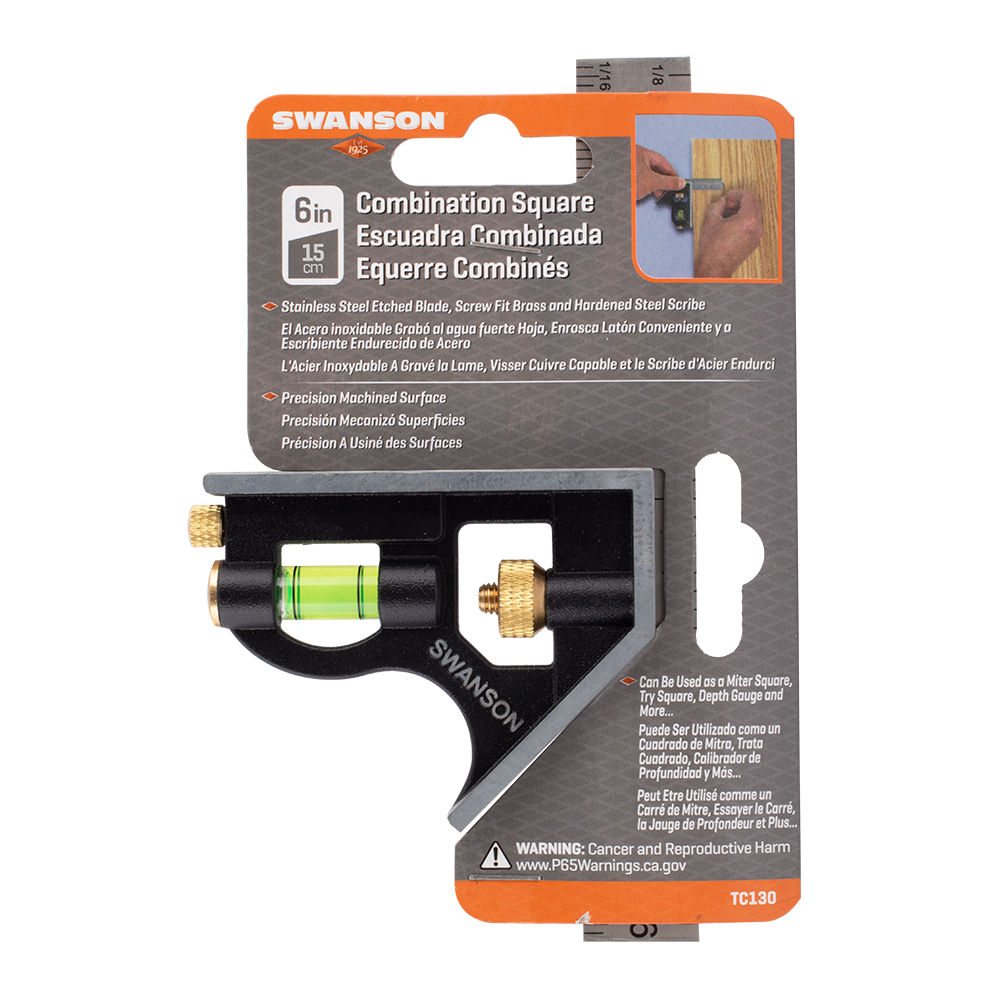 The 150mm/6" Pocket Combination Square from Swanson stands out as one of their most sought-after squares. This versatile tool boasts CNC machined working surfaces, ensuring reliable accuracy, along with 45° and 90° marks. Unlike less durable tube-type vials, it incorporates an impact-resistant acrylic level vial that surpasses expectations. Acting as both a square and a depth gauge, this 6-inch workhorse offers exceptional functionality. Its precision machined die-cast zinc body and hi-impact composite head guarantee durability. The spring-loaded brass bolt ensures firm and accurate settings, while the etched stainless steel blade exudes precision. Additionally, it comes equipped with a screw fit brass scriber and an impact-resistant acrylic vial with 1/8", 1/16", 1/32", and mm scale gradations.
