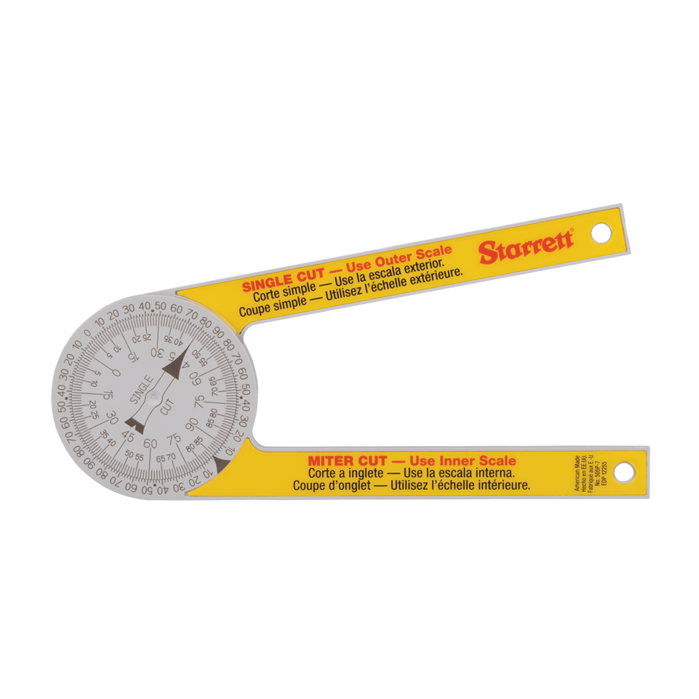 Plastic Miter Protractor takes error-prone calculations out of the process of miter cuts. Tool is ideal for carpenters, plumbers and all building trades that require the measuring and transferring of angles and invaluable for home use.