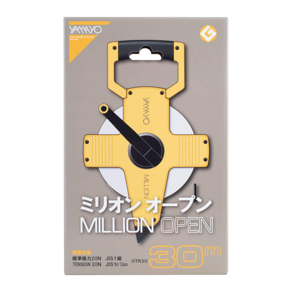 The Yamayo "Million" Long Measuring Tape is a robust tool designed for precision and durability. Featuring a fibreglass core coated with protective white PVC, it is housed in an ABS open reel for added resilience. Engineered to endure rugged use, it resists tearing and withstands extreme weather conditions, ensuring longevity. The tape boasts high accuracy and visibility, with weather-resistant properties and easy cleaning in water. Ultraviolet-fixation permeating ink keeps the markings intact for years. Its non-conductive blade, made from two non-conductive materials, ensures safety. Starting at zero from the hook blade, it guarantees precise and reliable measurements.