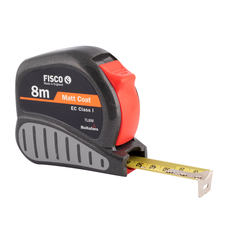 The Fisco Tri Lok Measuring Tape is a reliable tool for professional users who demand accuracy and durability. The blade is precise to EC Class I standards and graduated in centimeters with red numbers every 10 centimeters. It is made of "Matt Coat" carbon spring steel that is concaved, hardened, and tempered for long extension and polyester coated for improved resistance to abrasion. With an easy 60mm inside measurement, add-ons are effortless. The tough grey ABS case has a non-slip rubber grip pad for a secure hold. The positive action lock is easy to operate and minimizes blade slip while holding the blade securely at the desired length. A bump stop provides added blade and end-hook protection. The tape also includes a belt clip and self-zeroing end-hook. This measuring tape is proudly made in Britain.